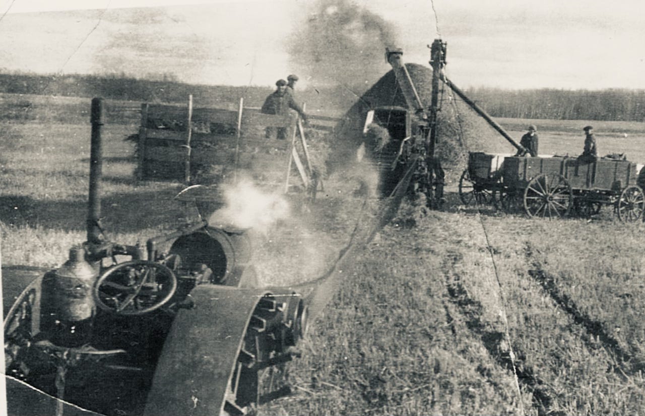 Mary was as much the subject of stories as she was a teller of them. As a girl, she was called a tomboy. She liked to ride her father’s workhorses and preferred to work in the fields with the men more than in the kitchen. In autumn, farmers got together to harvest each other’s fields. It was a more efficient way to work when they pooled their labour and machinery. Harvest crews were usually all men, but for many years Mary was part of one run by my grandfather, Pytro’s son. She was a “field pitcher,” whose job was to toss bundled sheaves of wheat into the threshing machine